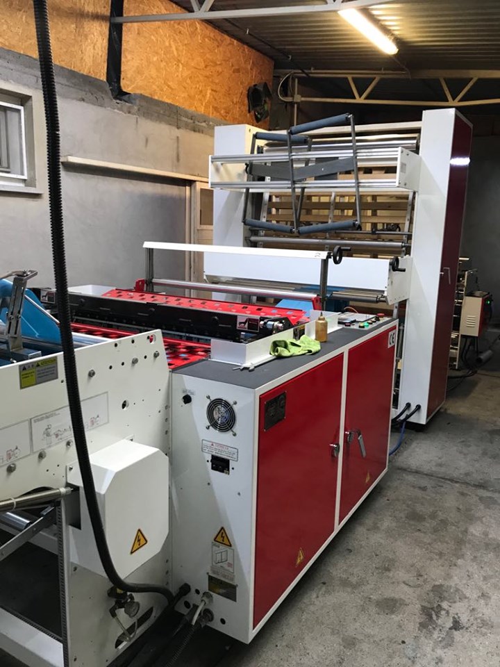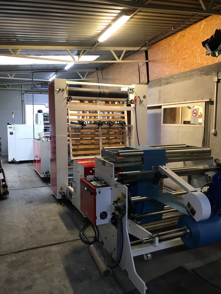 Nagysebességű automata talphegesztő gép, rollnis zöldséges tasak, szemeteszsák és asztalterítő gyártására, fűtött hasítóval, 2 pályás címkézővel felszerelve. Termelési kapacitásunkat a Hemingstone HM 1000MR+S2 konfekcionáló géppel tudjuk növelni. Így minőségben és gyorsaságban a legmagasabb megrendelői elvárásoknak is meg tudunk felelni.